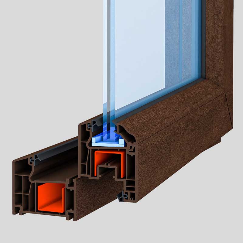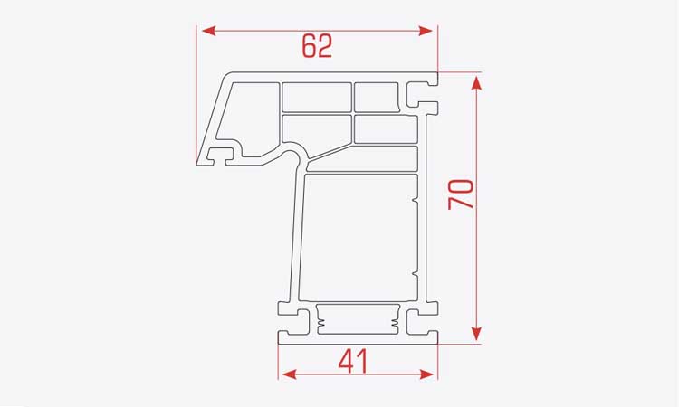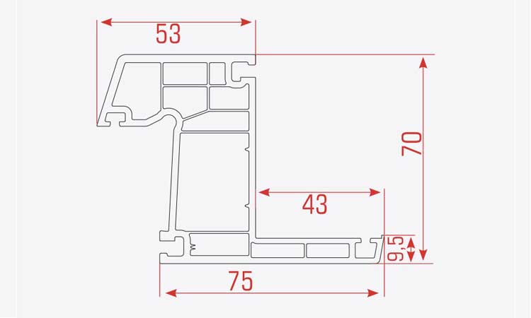 5 odacıklı ve 70 mm genişliğine sahiptir. TPE contalı üretilmekte olup köşe kaynağı ile sızdırmazlık sağlar. Dekoratif ve kendinden contalı çıtalarıyla kusursuz dizayna sahiptir. Birçok yardımcı profili destekler, tüm projelerinizde kullanabileceğiniz fonksiyonel bir yapıdadır. Su tahliyesini kolaylaştıran özel eğime sahiptir.